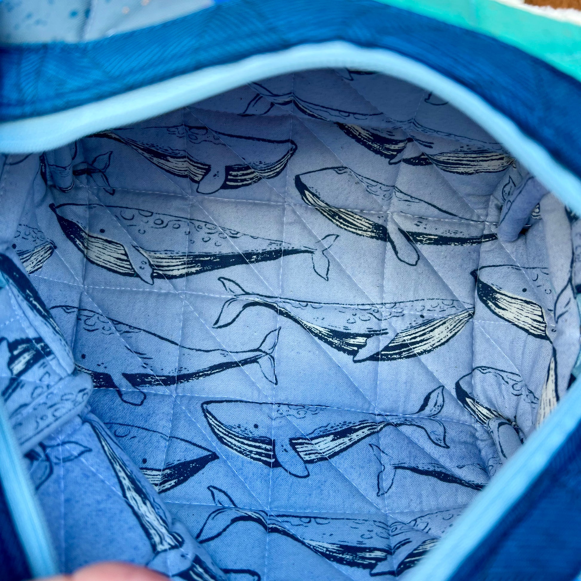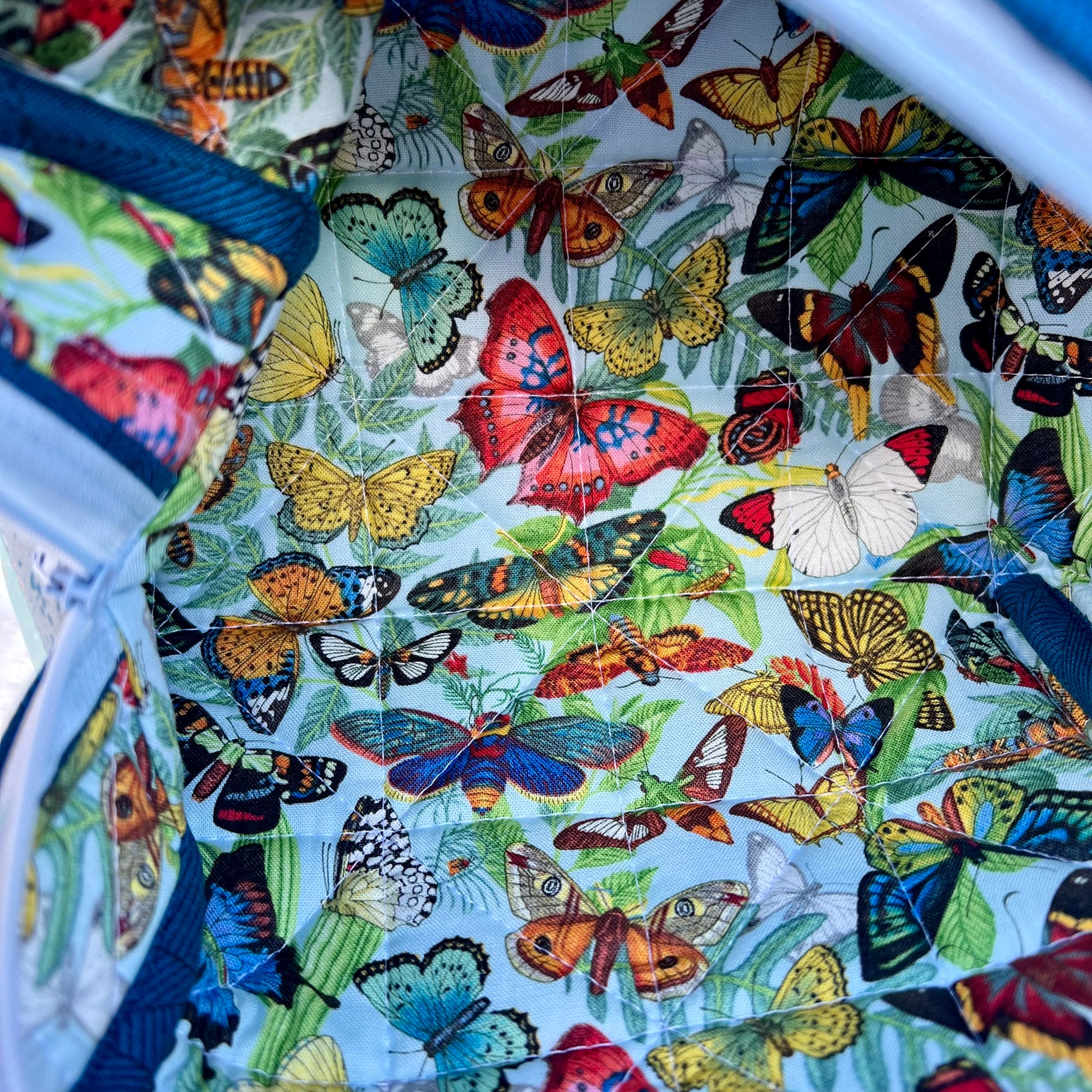 Lining fabric : 2 light blue with rainbow butterflies, and one blue with whales