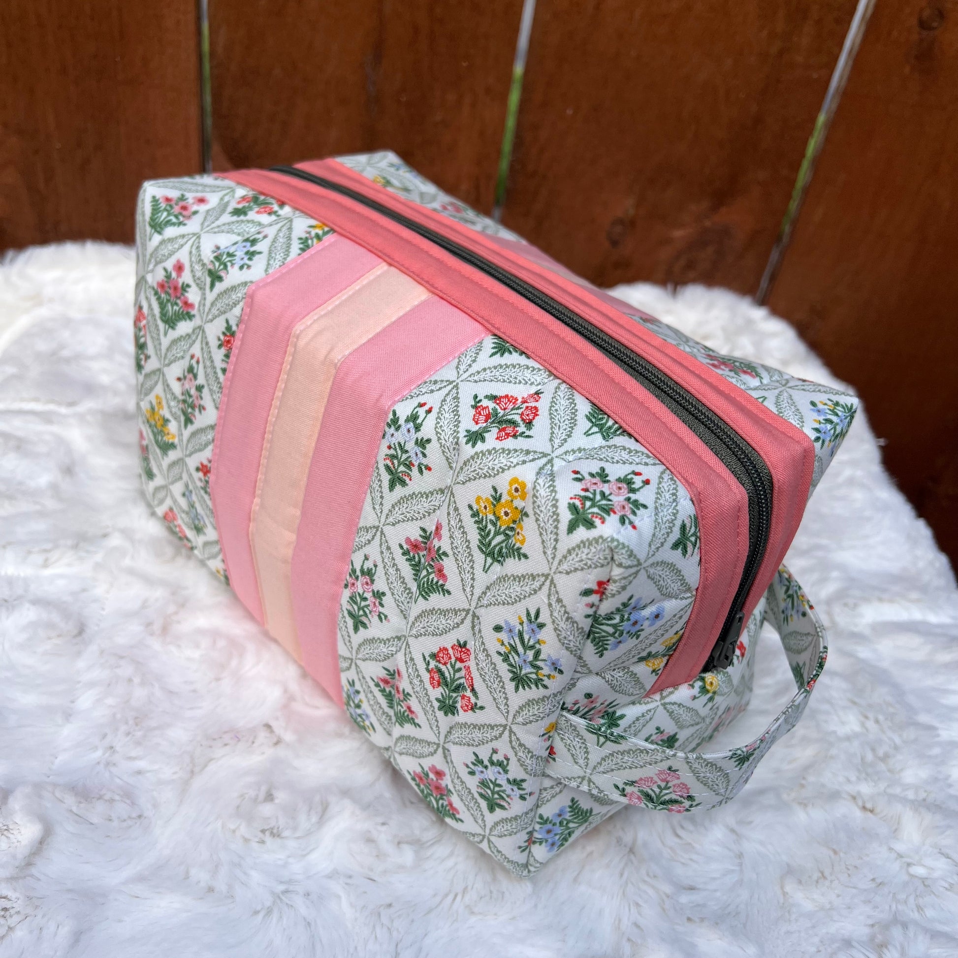 Floral Rifle Paper Coral Stripe Large Boxy Zippered Quilted Pouch